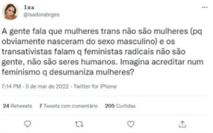 Isadora Borges’ case began in 2020, when she shared comments on X (then Twitter) expressing her views on gender ideology. The comments did not incite violence or target any individual. The posts (translated) read: “We say that trans women aren’t women (because they were obviously born male) and trans activists say that radical feminists aren’t people, aren’t human beings. Imagine believing in a feminism that dehumanizes women?”