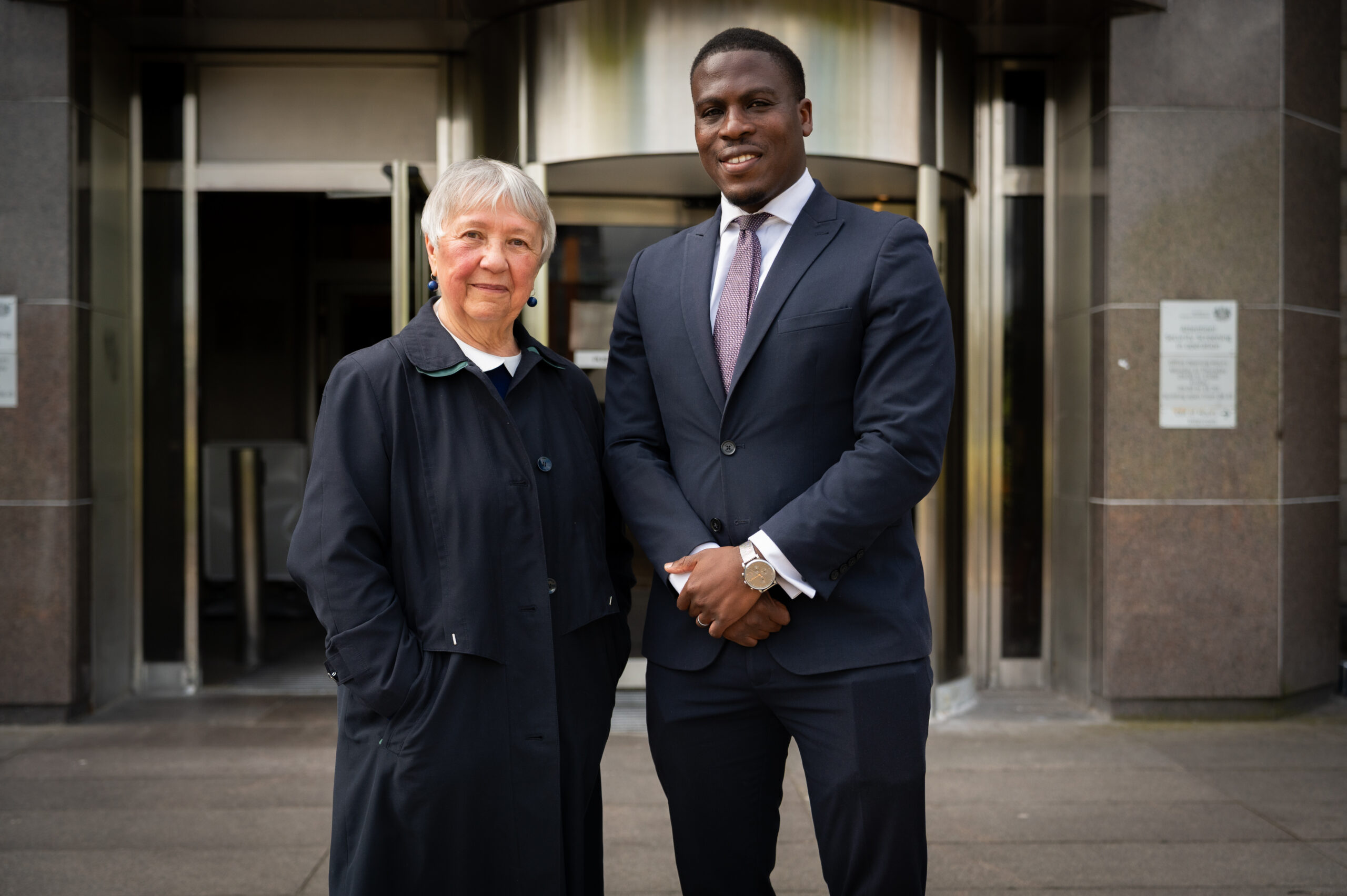 (First and second pictures: Rose Docherty and Legal Counsel for ADF International Jeremiah Igunnubole outside Glasgow Sheriff Court, following yesterday’s ruling; Rose Docherty outside the court)