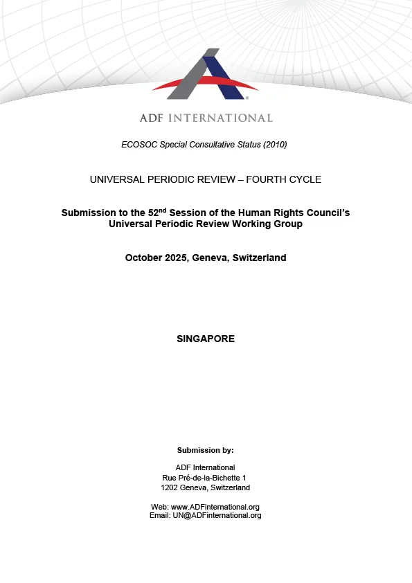 This submission outlines concerns regarding Singapore’s restrictions on freedom of religion or belief and freedom of expression. These concerns stem from specific legal frameworks, including the Maintenance of Religious Harmony Act, Societies Act, Penal Code, Undesirable Publications Act, and Protection from Online Falsehoods and Manipulation Act (POFMA). In ADF International’s analysis, several provisions within these laws are inconsistent with Singapore’s human rights obligations.
